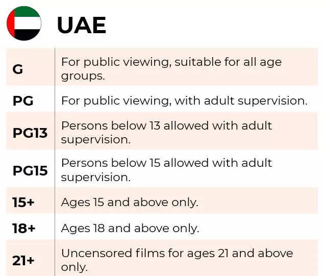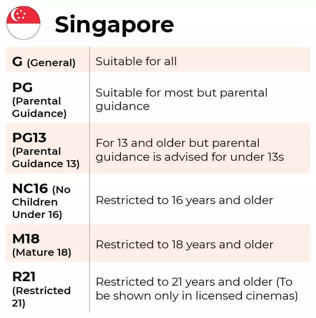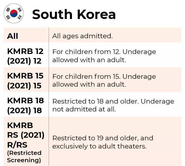 In some countries, movie ratings not only restrict adolescents from viewing certain films but also restrict adults from watching them. In markets like UAE and Singapore, some movies are restricted to the 21+ age group. Other countries like South Korea restrict screenings of 'R' rated films, exclusively to adult theatres.