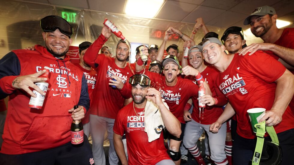 “This is just one step, guys,” Albert Pujols told his teammates at the start of the celebration. “Just remember this moment. This is what we want to do deep in October and hopefully win the championship and bring it to the city of St. Louis.”
