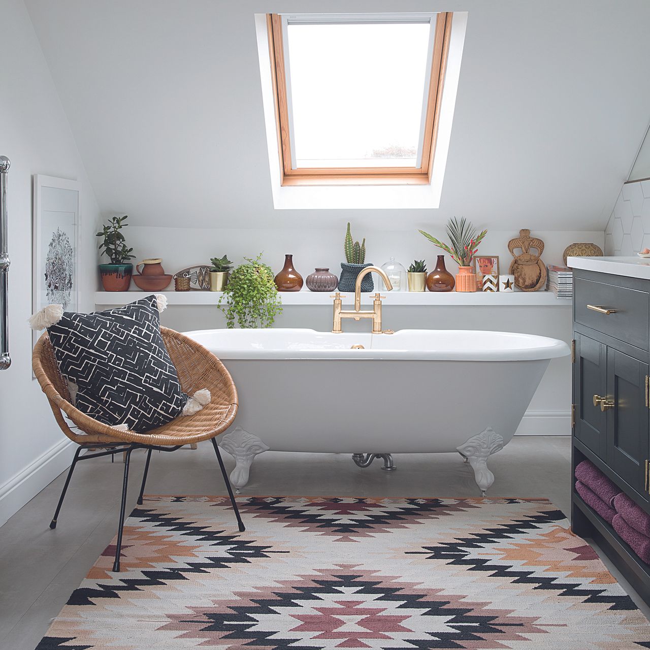 Adding more warmth is then left down to accessories, like bath mats and Moroccan-inspired rugs that make a bathroom feel more lived-in.