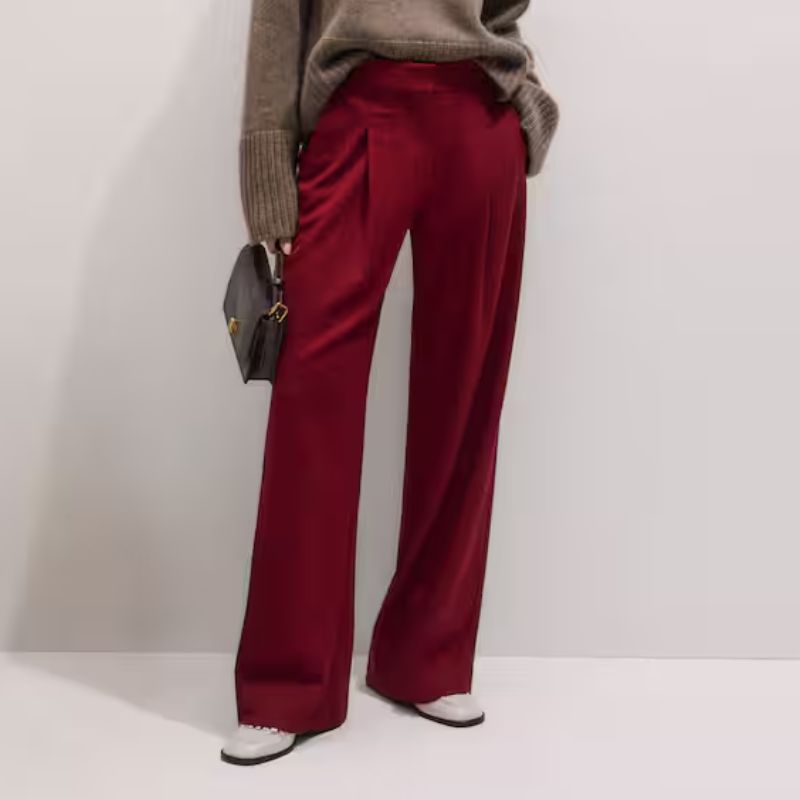 Wide-leg trousers have become a staple silhouette for stylish women. Universally flattering, the floaty but tailored design feels both polished and relaxed, and the gorgeous red hue feels seasonally appropriate for festive occasions. Pair with a high heel to lengthen legs and streamline silhouettes. You can even add a blazer to add a more fitted finish.