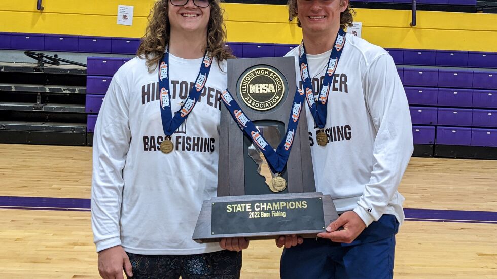 Last Saturday, JCA claimed its first state championship in bass fishing on Carlyle Lake. Mouw, a junior, and sophomore Logan Kinsella in JCA’s Boat 1, driven by Mouw’s dad Ryan, caught their limit of five largemouth bass weighing 8 pounds, 14 ounces. Kinsella caught two keepers on back-to-back casts in the final hour, so they culled two smaller fish, important because Antioch finished second, ounces behind (8-8).