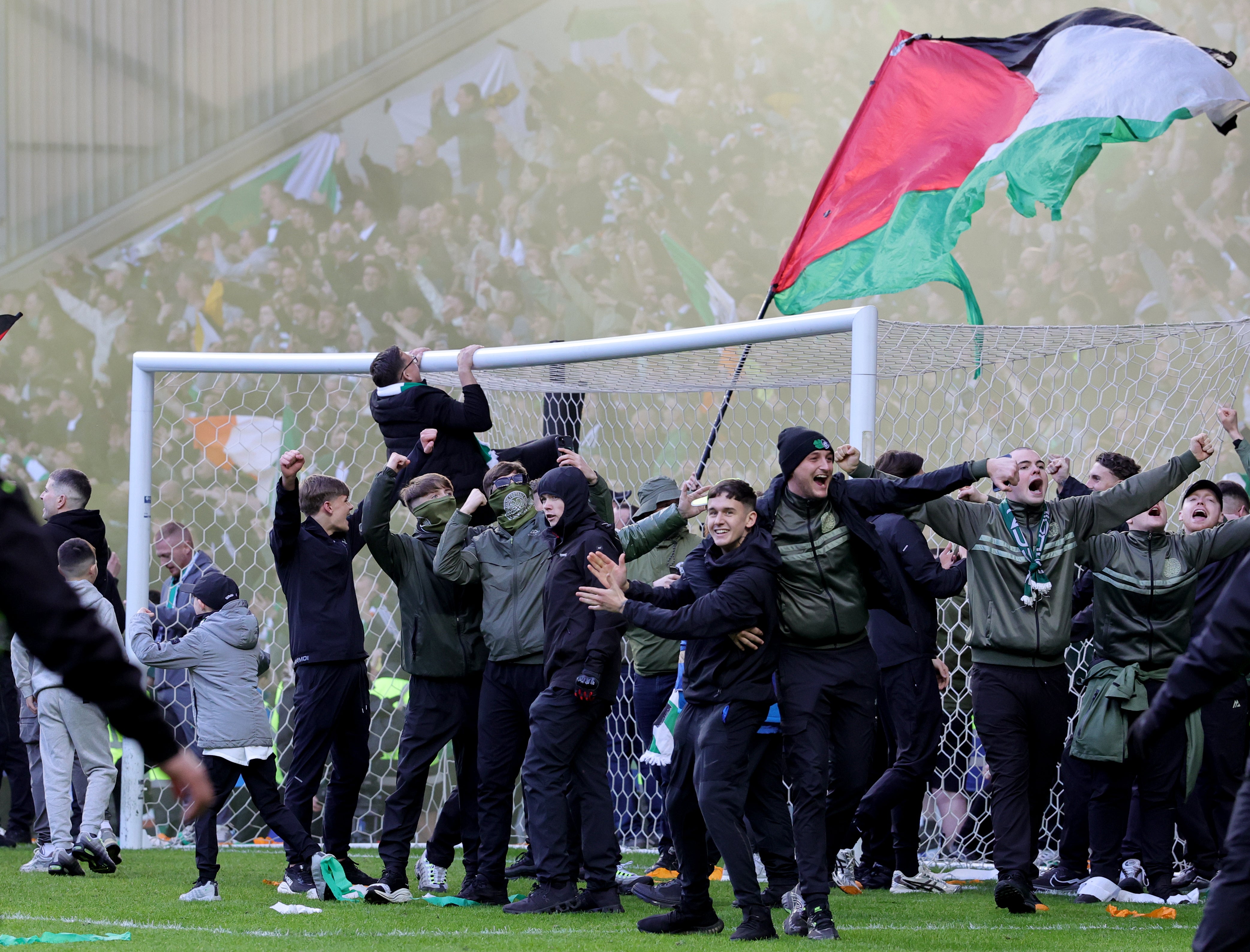 Celtic’s dramatic penalty shootout victory over Rangers was overshadowed by the post-match scenes which unfurled at Ibrox Stadium as fans from both clubs flooded the pitch and released flares and projectiles at each other.