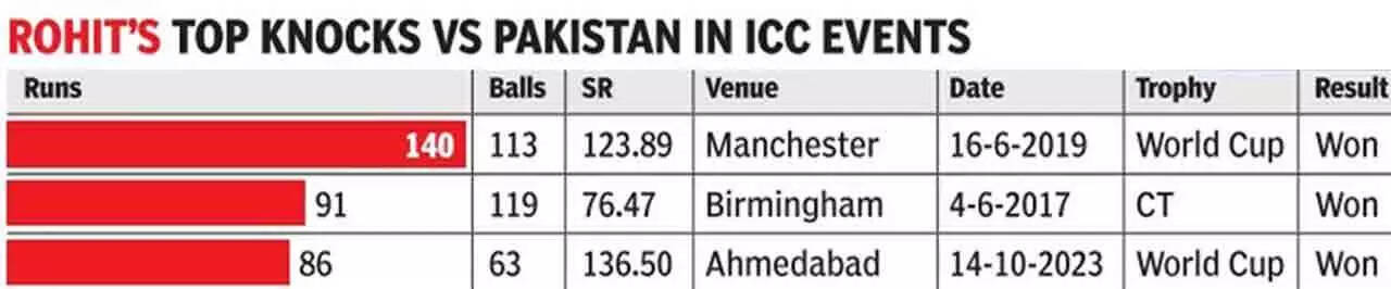 Rohit also belted a 63-ball 86 that demoralized the men-in-green in 2023 in Ahmedabad, putting on a tutorial in how to pull high-pace deliveries into the galleries.