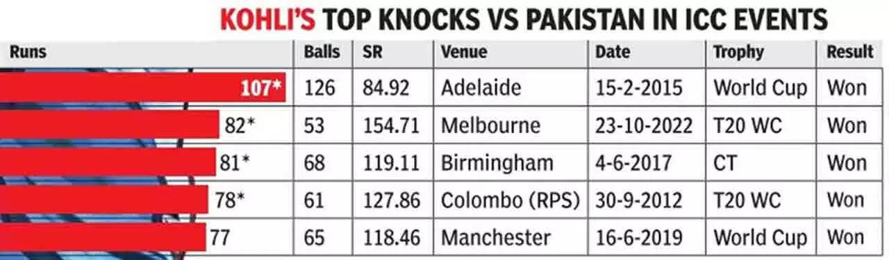 Political correctness isn't Kohli's forte. He doesn't hide behind 'it's-just-another-game' platitudes. He loves the hype and the big-game pressure whenever India play Pakistan. His numbers against Pakistan prove it: 16 ODIs, 678 runs, avg 52.15, strike-rate 100.29.