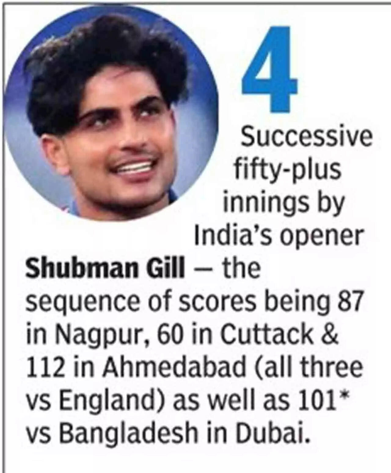 Coming off a century in his last game, the third ODI against England at Ahmedabad, Gill, who sported a determined look from the start, started dominating the Bangladesh attack from the first over when he executed a short-arm pull for four off Taskin Ahmed. Dancing down the pitch repeatedly to smash the bowlers past the cover region or pulling them with disdain, he looked in regal touch.