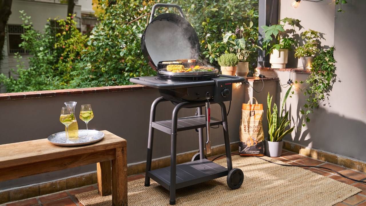 Priced at £349, the Char-Broil Patio Bistro E2Coal is designed for smaller outdoor spaces, and allows you to switch between electric grilling and charcoal smoking.