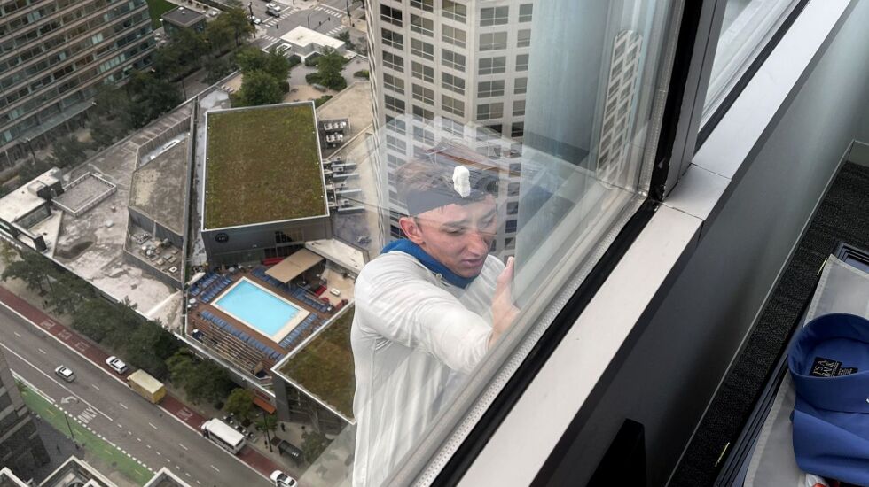 Shah said he had heard of the climber and knew he was professional. Shah saw him through the glass on the fifth or sixth floor.