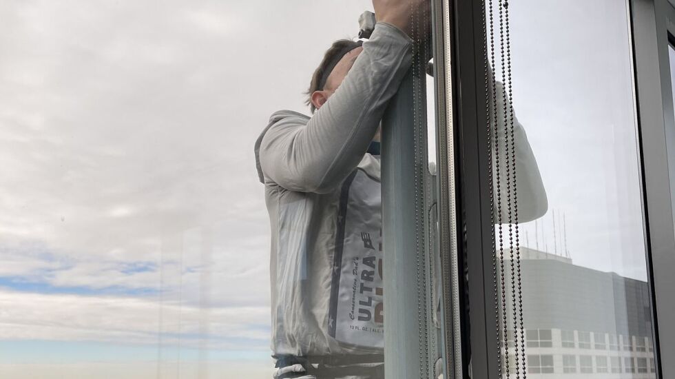 Veronica Mitchell, 26, who works at the Jamba Juice in the building, said she walked over to the window this morning when someone asked her if she had seen the climber.
