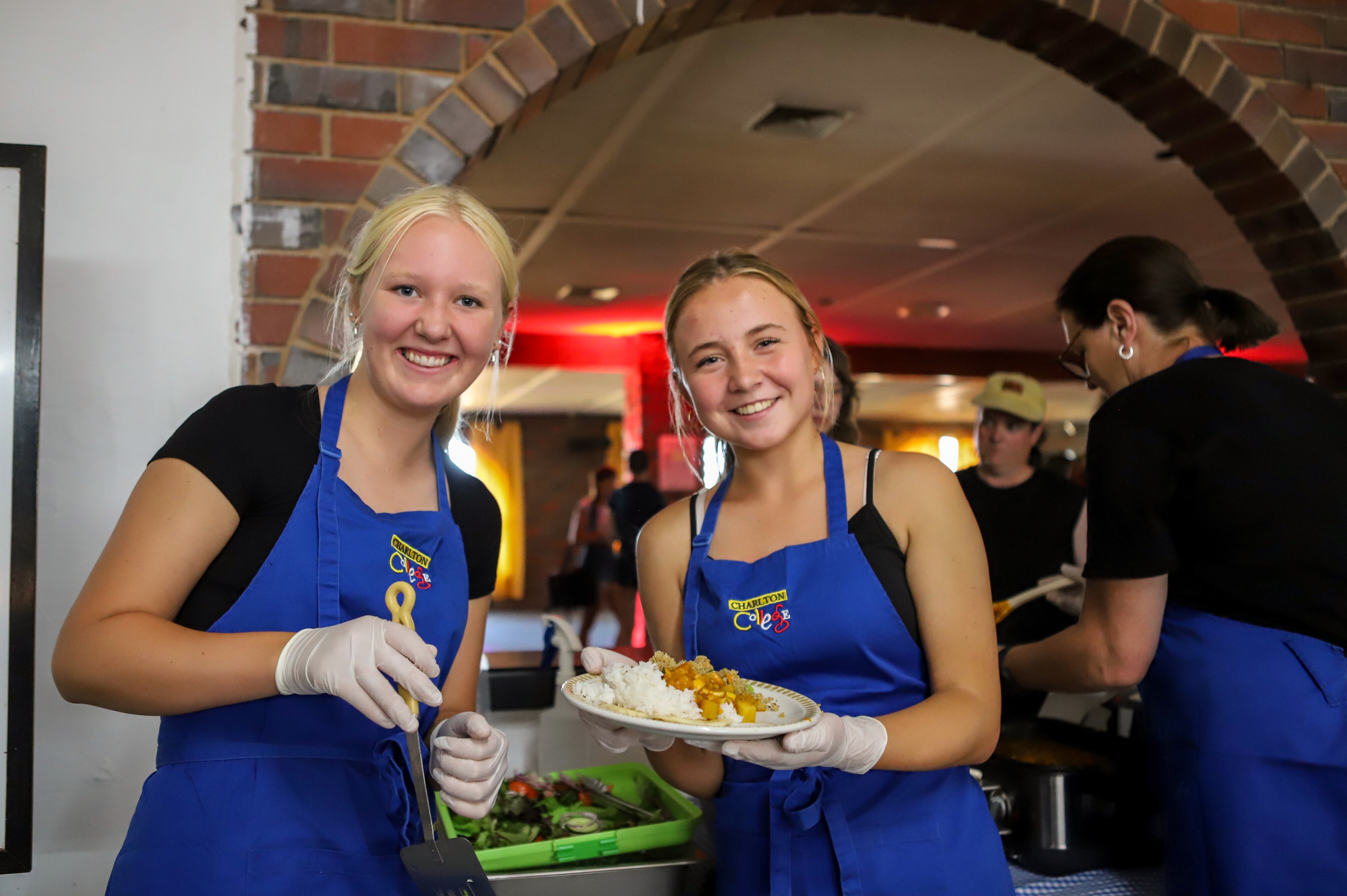 Naomi Fitzpatrick, a parent of one of the teens, watched on as chops, sausages and buttered bread were sent out alongside vegan curries through the motel's arched serving window.