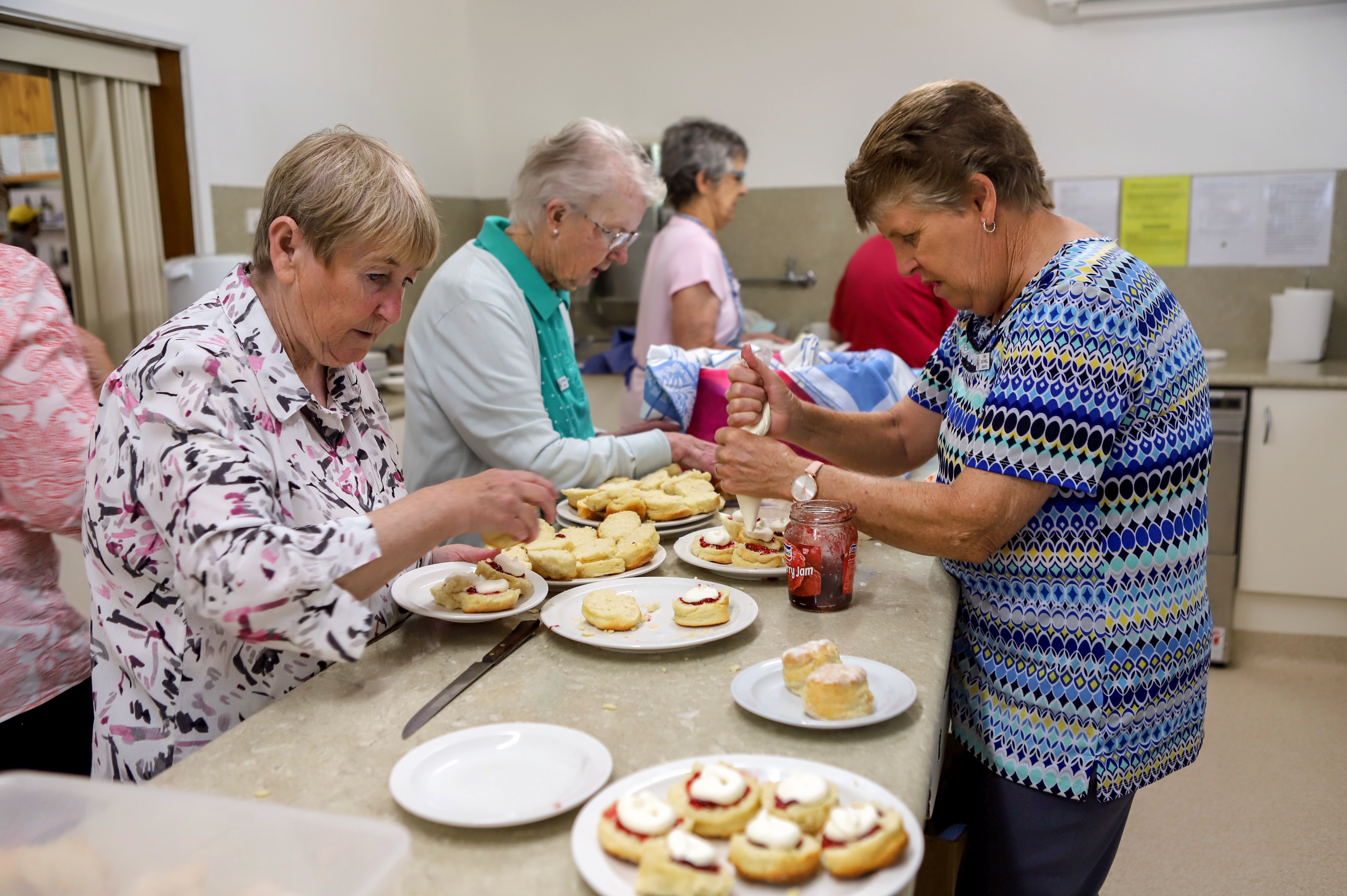 Even in the CWA kitchen, where more than 200 scones were piped with jam and cream, concessions were being made.