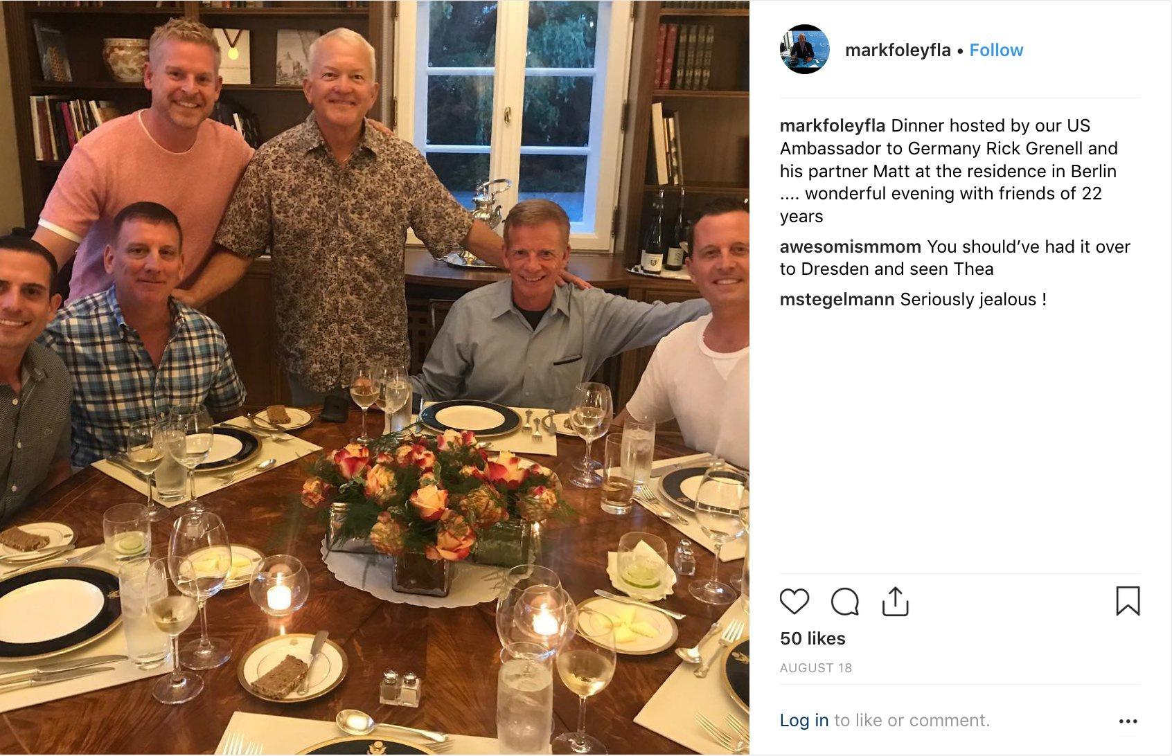 Then-U.S. Ambassador to Germany, Richard Grenell hosted former Rep. Mark Foley (R-Fla.) at the official residence in August 2018. Foley resigned from the House in disgrace in 2006 after sending sexually explicit messages to underage teenage boys.