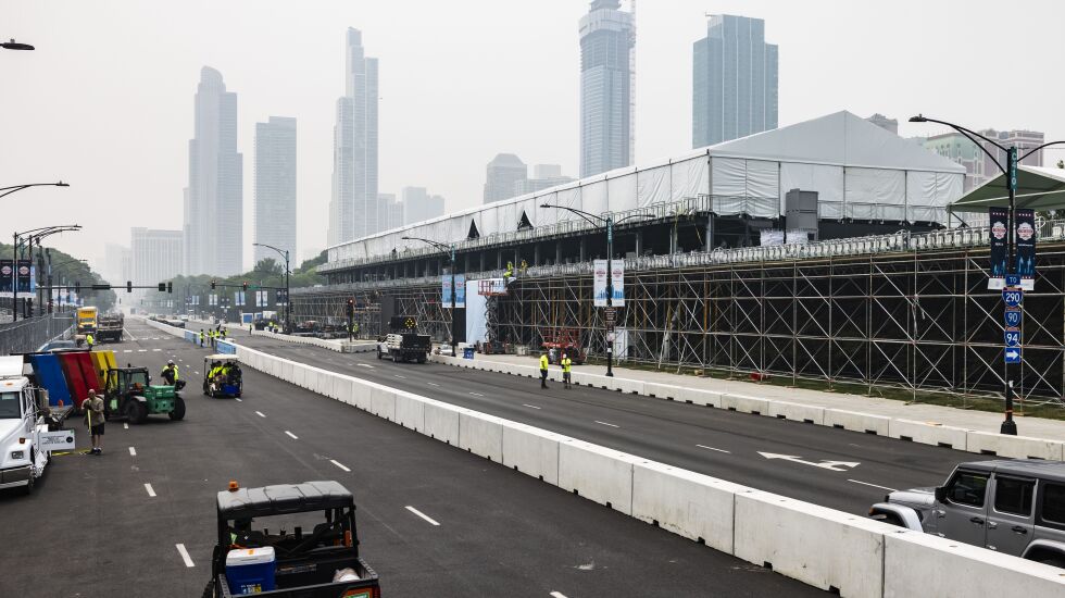 Flatbed trucks have been carrying thousands of concrete barrier walls along Interstate 94 over the last two weeks for NASCAR’s Chicago Street Race.