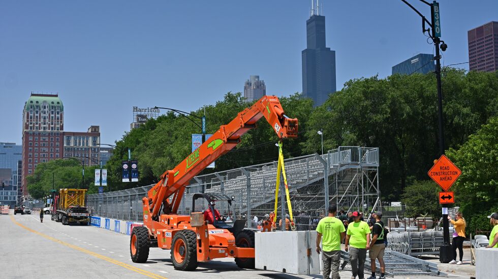 From the staging area, trucks have been dropping them off at the track. The last barriers will be placed Friday after DuSable Lake Shore Drive is closed for the race.