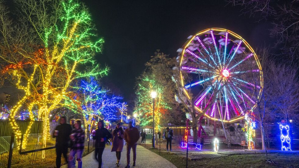 The 2023-24 Illumination: Tree Lights season through Jan. 6, will feature 18 displays, including two new and four returning favorites along a one-mile paved walkway. The “Winter Radiance” exhibit boasts LED tall grasses in homage to indigenous Midwest plants. The mile-long Starlit Trail takes visitors on a reversed-direction course this year. Enjoy snacks, hot chocolate and other drinks at warming bonfires. The Ginkgo Restaurant will be serving hot meals for purchase.