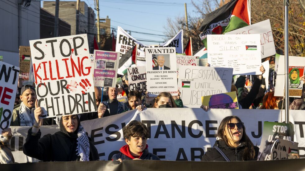 Protesters calling for a ceasefire had blocked the entrance of the Israeli consulate in Chicago on Nov. 13 at the Ogilvie Transportation Center. More than 100 people were arrested in the action organized by Chicago chapters of Jewish Voice for Peace, IfNotNow and Never Again Action.