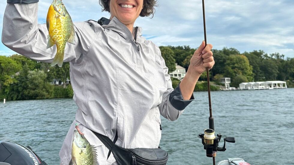 Photo at the top came from Arden Katz, who took his sister Abby Chemers out for her time fishing and she caught bluegill, including the double in the photo, in 18 feet on Geneva Lake in Wisconsin. For details, see the GENEVA LAKE report below.