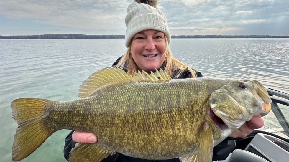 Guide and fishing teacher Mike Norris texted the photo at the top of Laura Hiestand, Schaumburg, on an outing with Norris on Big Green Lake in Wisconsin.
