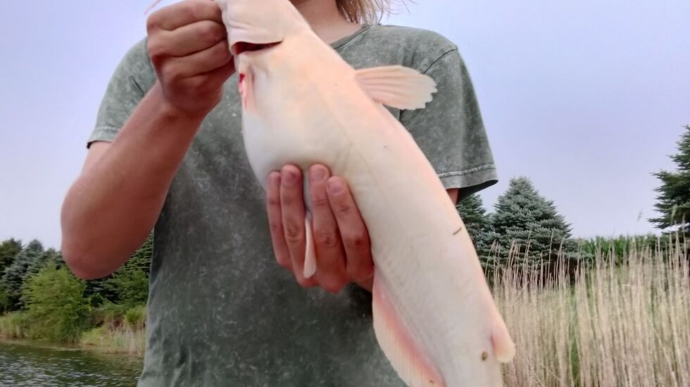 Tim “Spike” Davis texted the photo above of what appears to be an albino catfish, and this: