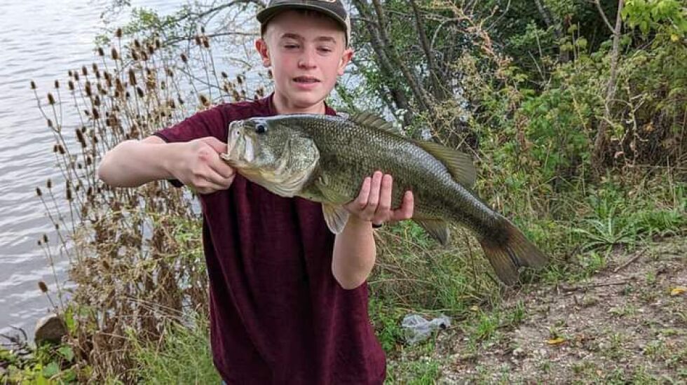 Hi dale! I’ve been submitting some photos to you and some reports for the last three or four years now I’ve even been lucky enough to Grace the suntimes with my photos thanks to you and I appreciate that. My friends 13-year-old son caught this fish out of a public Lake in Lake County on a live bluegill the youngster just started fishing he’s a freshman and he’s got many years of great angling ahead to come. His name is Chris and his dad rob took him out today Saturday Sept 17th. Easily a 5lb largie