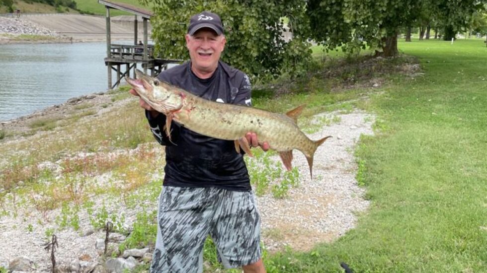 Or do what Greg Katello, owner of the Fishing Connections in Tinley Park, did on his way back on a trip to Lake Sara and stopped by for a time below the spillway at Lake Shelbyville and hooked into muskies, such as the one below.