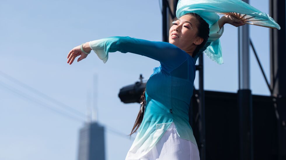 This was intentional, according to one of the group’s co-founders, Amy Xie, who decided to bring the dance “Beside the Water” out of a multiyear hiatus when the group was booked at the event again. According to her, the choreography tells the story of a little girl dancing next to a body of water, which she thought was perfect for the lakeside stage.