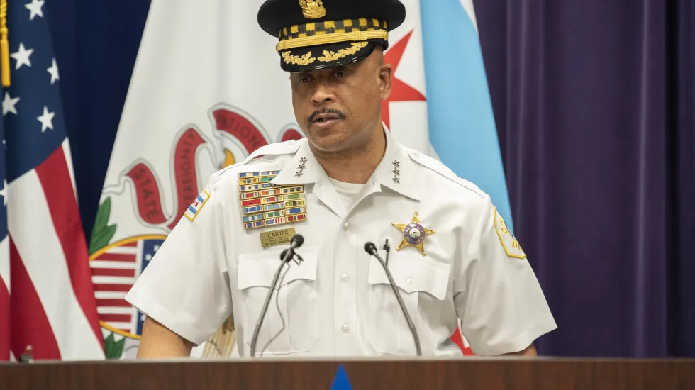 Eric Carter, first deputy superintendent of the Chicago Police Department, also took part in Garland’s press conference.