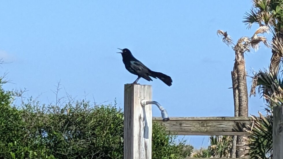 The Cornell Lab of Ornithology, description of a trait of boat-tailed grackles, which I saw (and heard) all over the Florida coast this week