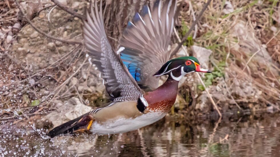Paul Vriend used the cover of a shoreline shrub to photograph this drake wood duck taking flight. “Most folks in Chicago haven’t seen one up close, because these birds are very wary,” he emailed.