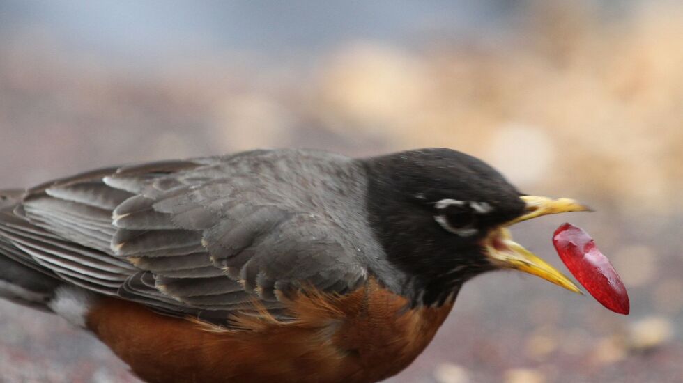Ron Wozny messaged last week from the North Side, “Grape season has begun. Robins and cardinals eating store grapes. They sit in front of my window and wait to get fed. They go thru over a pound a day.”