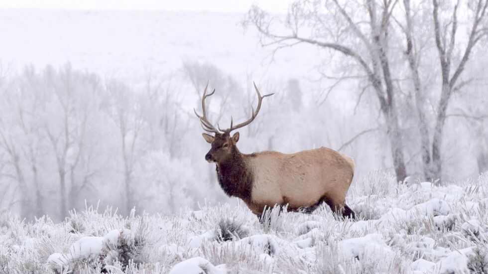 “That said, and in honor of the wandering elk, I thought I would send you a picture of an elk I took last fall in Teton National Park. I try to head out that way every fall to photograph moose and elk, and with luck, bears. Last fall, with an early snow pushing the elk down from the mountain, I had good elk luck. This year there was very little snow so the elk were hard to find, but it was a good moose year (and a grizzly!). I used the picture attached on our Christmas card.”