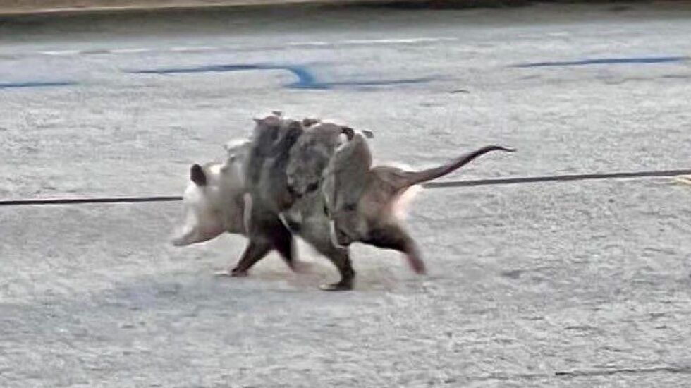 Alan Anderson was surprised June 15 to see this opossum with a back loaded with joeys (young opossums) crossing the road in Des Plaines, about half a mile west of the Des Plaines River.