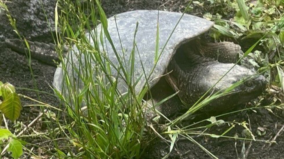 While monitoring a nesting bird area, Alan Anderson spotted a snapping turtle laying eggs in a scrape near Salt Creek in DuPage County. “I didn’t want to have it abandon its task, so I didn’t go by it to my monitoring point,” he emailed and took a few photos instead. “Not anywhere as big as `Chonkosaurus’ but the first time I’ve found one laying eggs.”