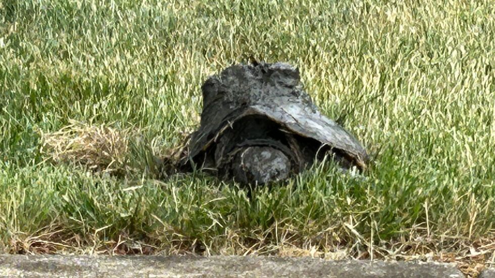 Ken Gregie photographed this snapping turtle, which was living in a culvert in front of his house in west suburban Bloomingdale. “Went out to get the paper, and there she was, digging in and scraping away the sod and dirt, her shell as big as a dinner plate, and a pile of mud on her like a top hat!,” he emailed. “And in the middle of my suburban lawn, just inches away from my driveway!”