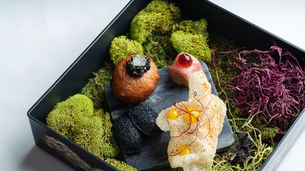 Claudia (1952 N. Damen Ave., contemporary cuisine): “In this special place, you can enjoy an intensely creative prix-fixe. The bento box—featuring the likes of a scallop cracker with preserved egg yolk, squid ink madeleines, yellowfin tuna nigiri stuffed with foie gras, and a caviar-topped potato beignet—sets the stage for an exquisite and memorable meal.”