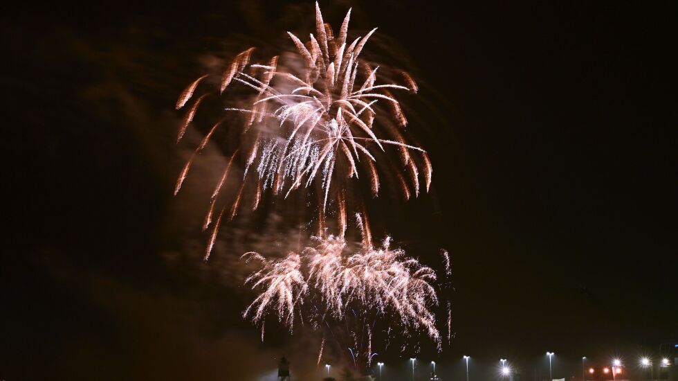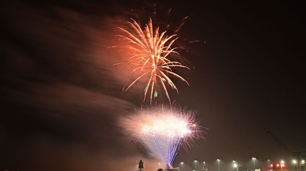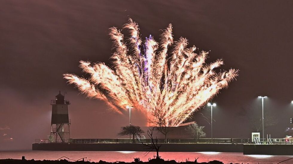 A fireworks display lit up the nighttime sky along the lakefront as revelers welcomed 2023: