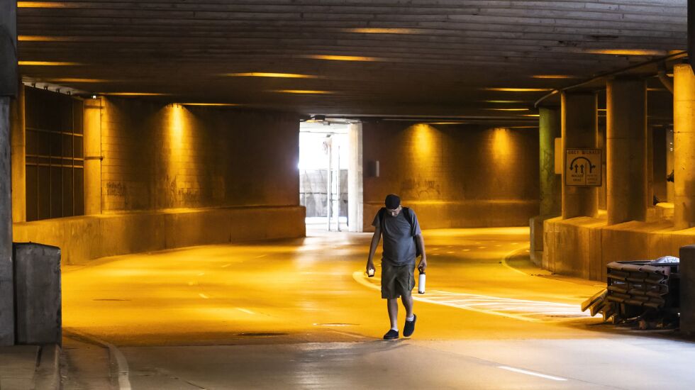 “It’s bad,” says Jeffery Holiday, 60, from outside a tent in a rare sunny section of Lower Wacker, near Van Buren. “I try to stay hydrated, which is hard to do.”