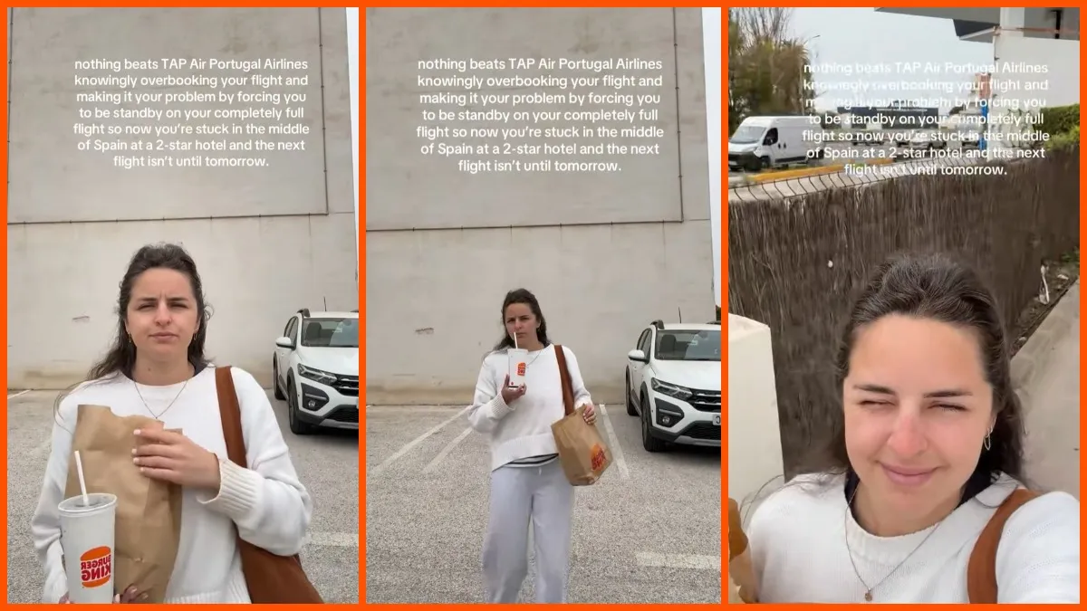 Wiedeman described her frustrating situation in the in-video text: “nothing beats TAP Air Portugal knowingly overbooking a flight and then making it the passenger’s problem.” She explained that she was forced to stand by for a fully booked flight, leaving her stuck in Spain at a 2-star hotel with no way to get home until the following day.