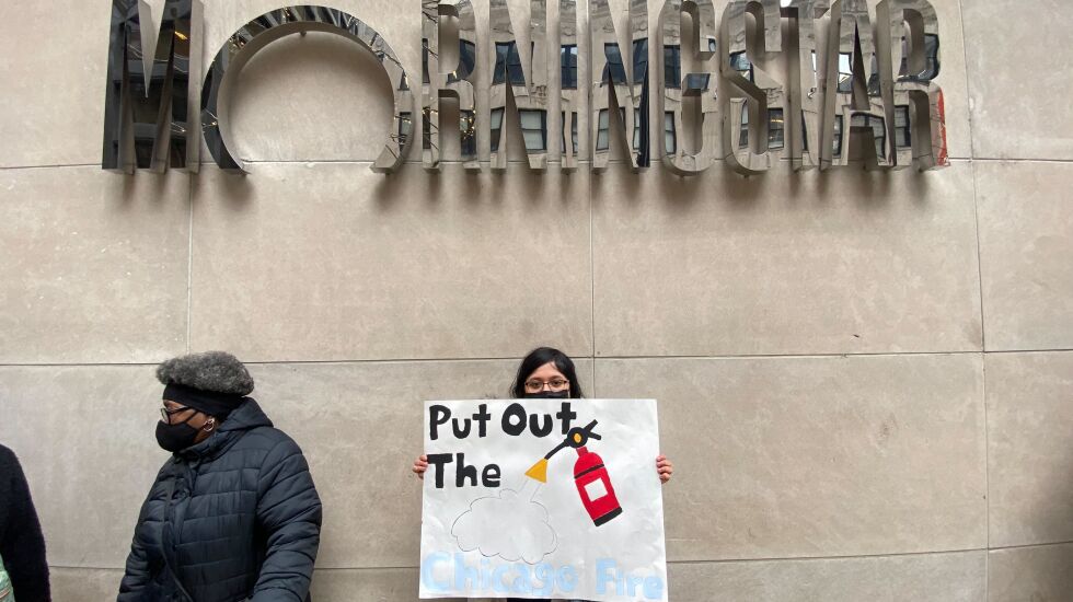 The West Side resident was among several dozen people — some also in wheelchairs — gathered outside Morningstar Inc.’s office, 22 W. Washington St., to protest founder Joe Mansueto’s plan to build an $80 million training facility for his Chicago Fire soccer team on a former public housing site.
