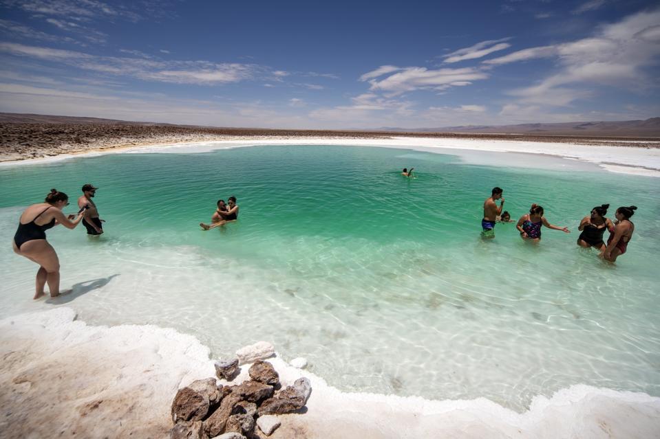 Looking like tiny Caribbean Seas, blue and green salt lagoons dot some parts of the Atacama Desert too. Some have flamingoes wading in them and others have fellow travelers.