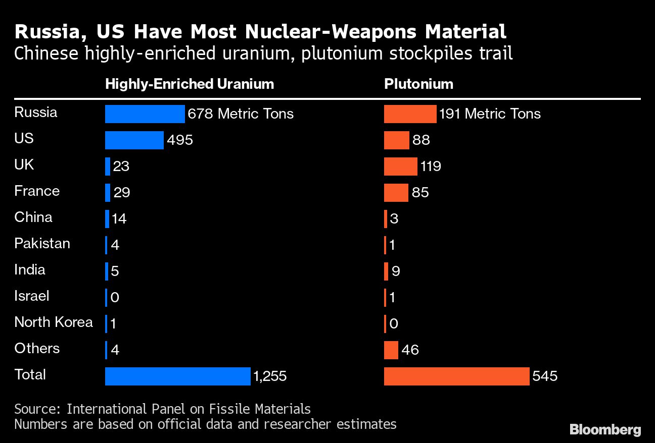 Pentagon officials say Russian state-owned Rosatom Corp.’s Dec. 12 supply of 6,477 kilograms (14,279 pounds) of uranium is fueling an atomic program that could destabilize Asia’s military balance, where there are growing tensions over Taiwan and control of the South China Sea. China possesses few means to increase its plutonium stockpile for nuclear weapons after its original production program closed down in the 1990s, experts say.