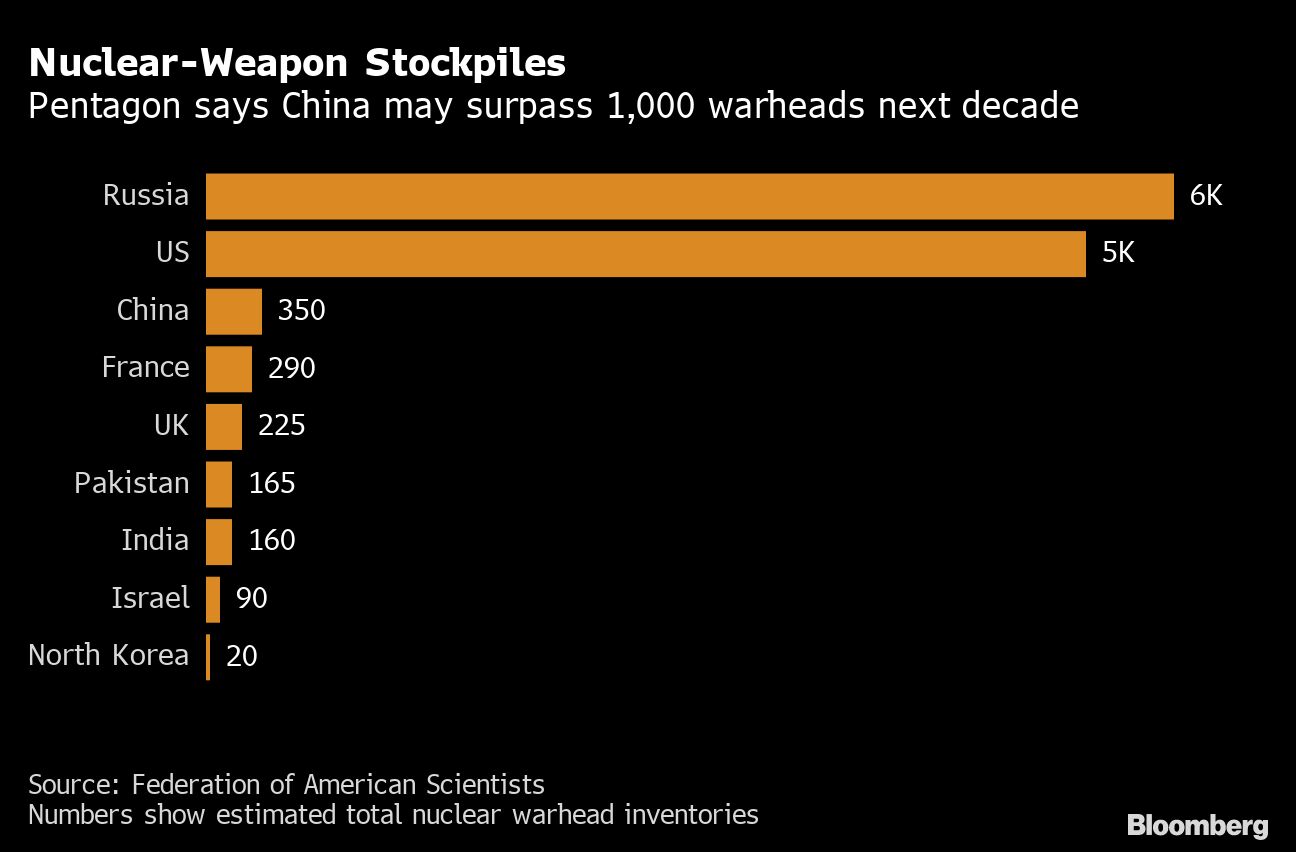 “Clearly, China is benefiting from Russian support,” said Hanna Notte, a German arms-control expert. The risk for Beijing is the US may expand its own stockpile in response to China’s build-up as well as the Kremlin’s abrogation of arms-control treaties and “the discrepancy will just grow again,” she said.