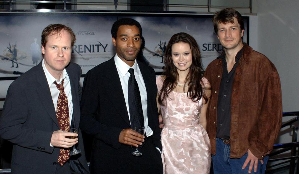 Left to right: Joss Whedon, Chiwetal Ejiofor, Summer Glau and Nathan Fillion arrive for the UK film premiere of 'Serenity', at the Odeon West End, central London, Wednesday 5 October 2005. Photo by Steve Parsons - PA Images/PA Images via Getty Images. PA Images via Getty Images