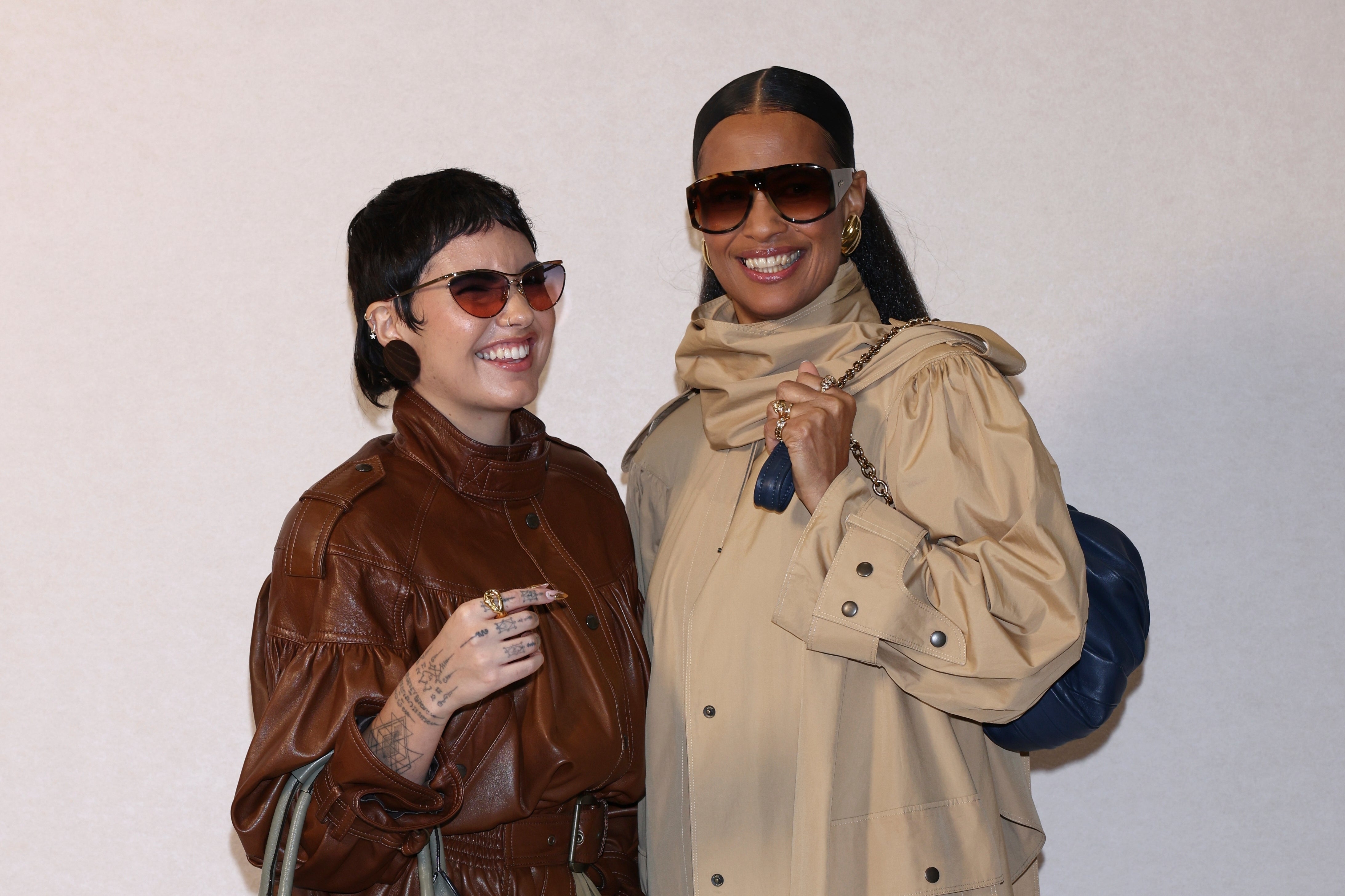 Mabel, 30, embraced the house’s bohemian codes in a tan leather bomber jacket, while Neneh Cherry, 61, opted for a relaxed tailored look, wearing a long trench coat and aviator sunglasses.