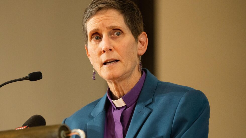 The Rev. Beth Brown of Lincoln Park Presbyterian Church asked the faithful to form groups of two or three and commit for one year to housing and supporting a family or group currently living in police district stations.