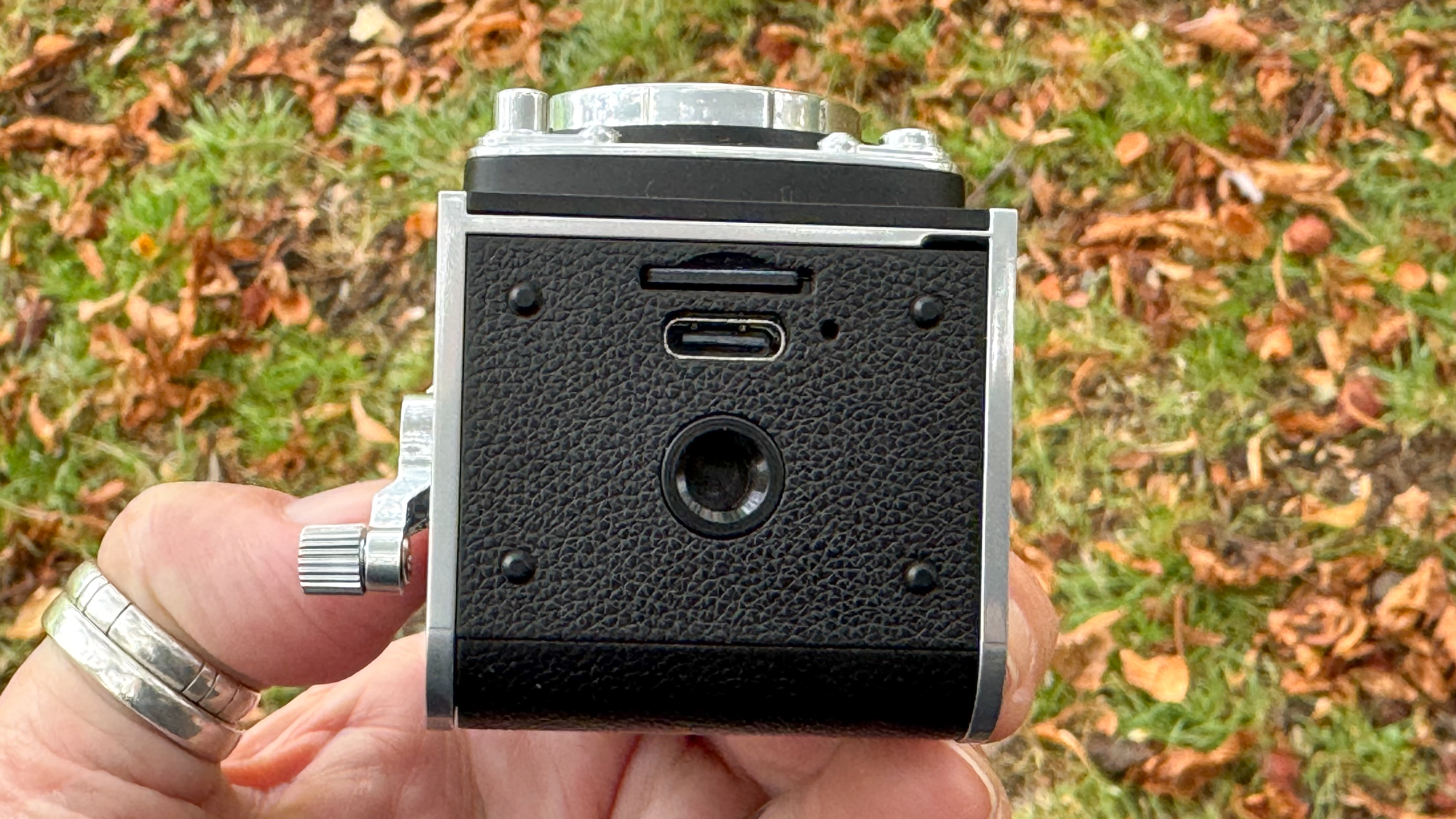 There are five main controls on the camera: four buttons at the front, and a crank handle at the side that mimics the TLR's wind-on mechanism. This rotating crank is nicely used to scroll through the images that you have shot, but also can be used to initiate video recording. With the latter, you can keep turning the handle for as long as you want the clip to last for. This sounds like a clever idea, but in my tests, it made it even harder to keep the camera steady. Very sensibly, there is a tripod socket – so that those who really do want to shoot video with this can actually get shake-free footage.