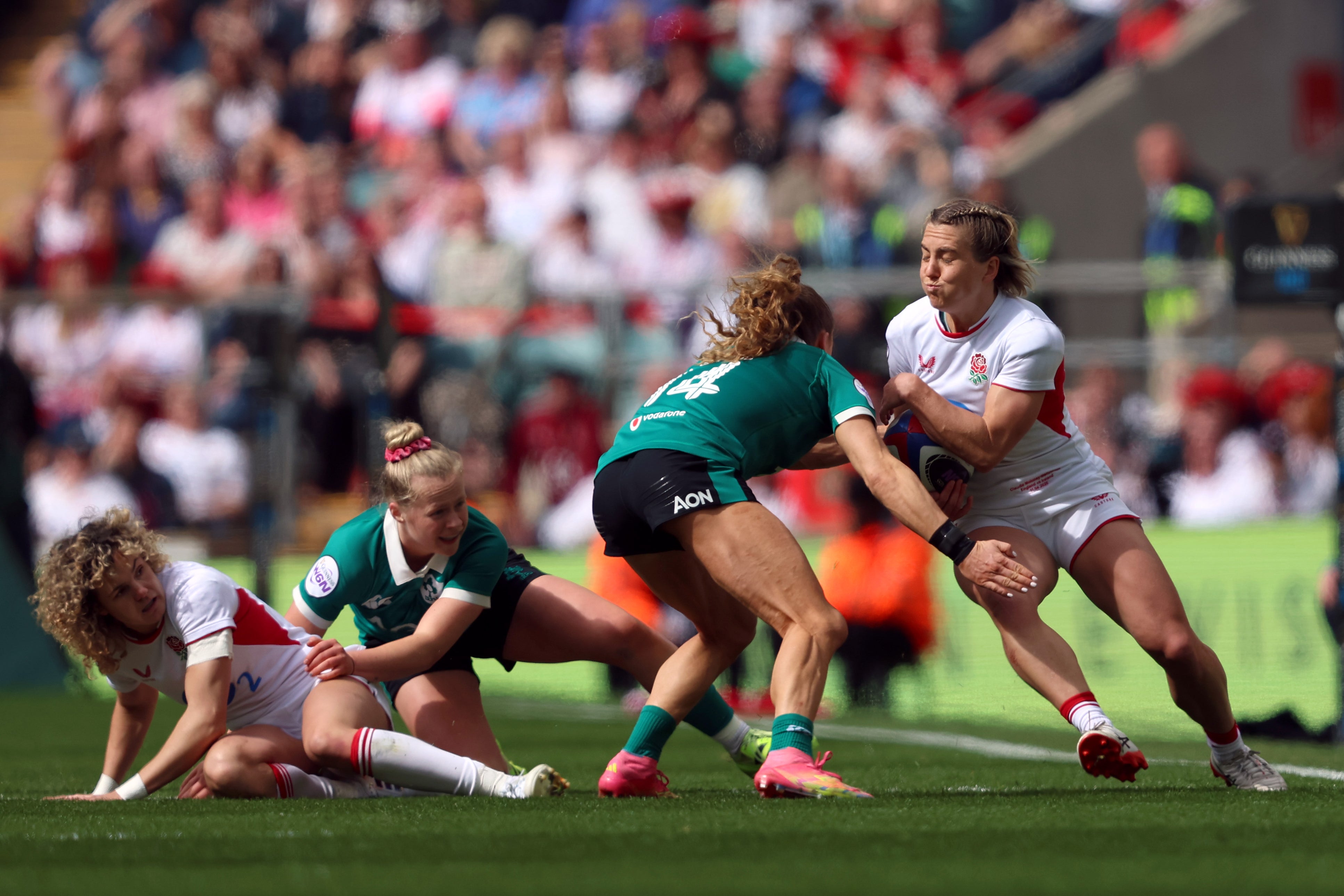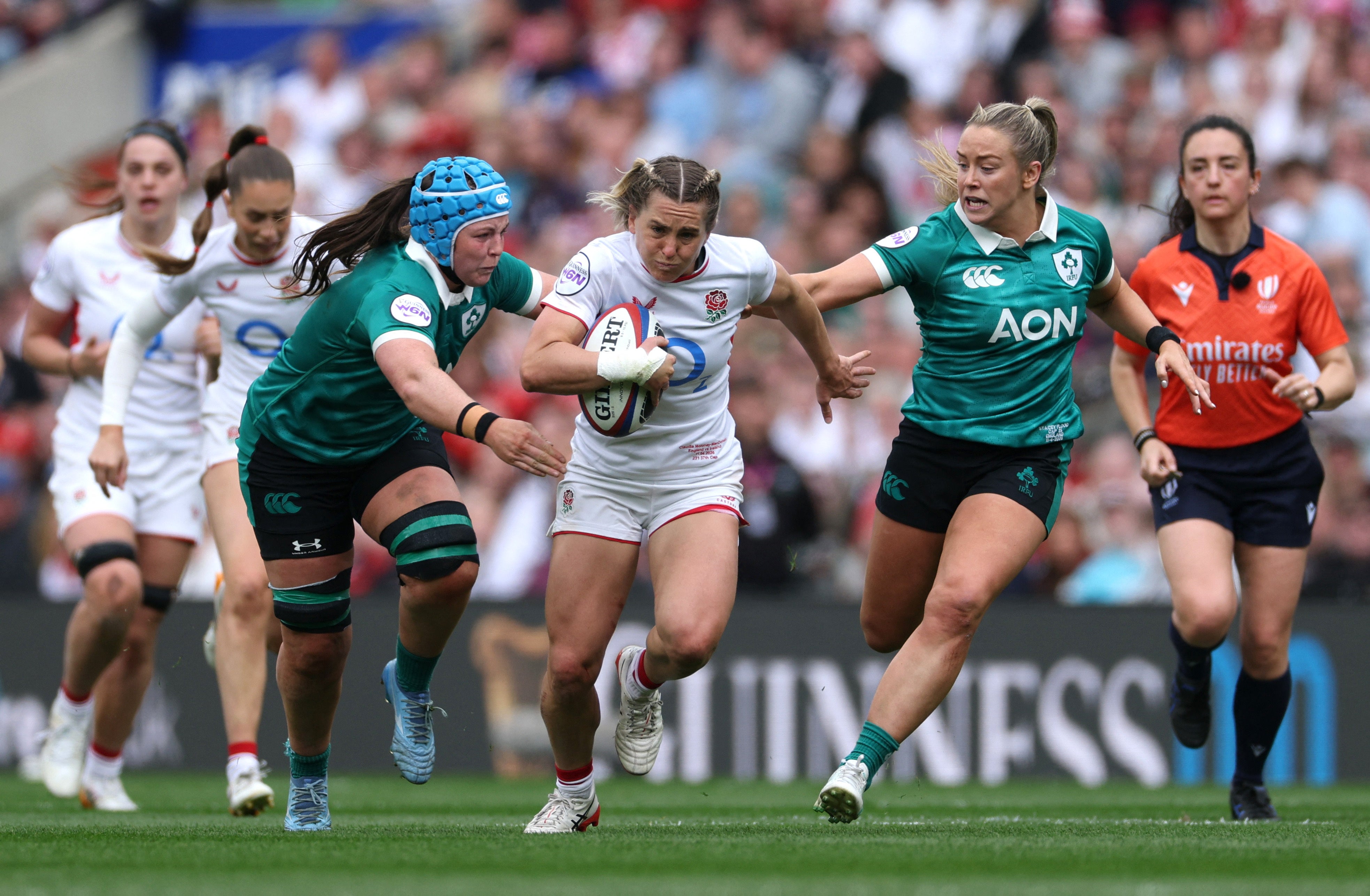 There are not many circumstances in which striking one’s spouse could be chuckled away just an hour later, but the Moloney-MacDonalds are no ordinary couple. On Saturday afternoon, England’s Claudia and Ireland’s Cliodhna ran out at Twickenham on opposite sides of a Women’s Six Nations clash for the first time – and survived with their marriage, just about, intact. “I think it was a kick in the head,” Red Roses wing Claudia recalls of a mid-match ruck run-in with her other half. “She said she had no idea, but I said, ‘You kicked me then rolled over the top of me!’ It’s fine, we’re over it.”