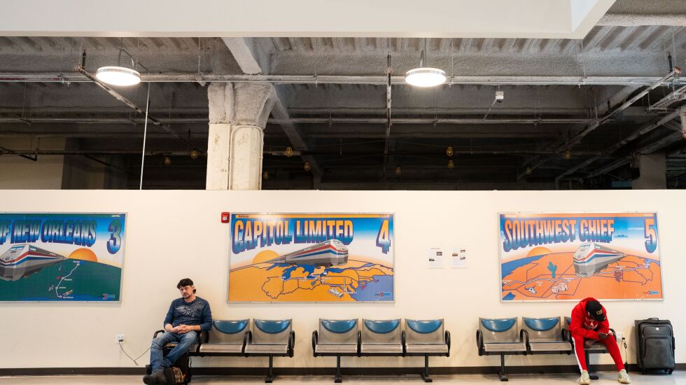 Colorful posters touting other Amtrak routes span the walls above a passenger waiting area just inside the newly opened entrance. The posters were saved from the Union Station parking garage before it was demolished a few years ago, Magliari said.