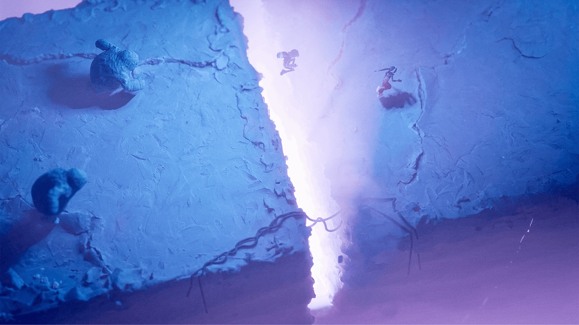 "This gravity mechanic lets players move through levels in creative and unexpected ways that we think feels really unique and engaging. It also emphasizes cooperation: you and your co-player must rely on each other to overcome challenges and navigate through some tricky spots together," says Sparks. "Ultimately, players should look forward to experimenting with mechanics, puzzles, and scenarios that continually evolve alongside the characters themselves."