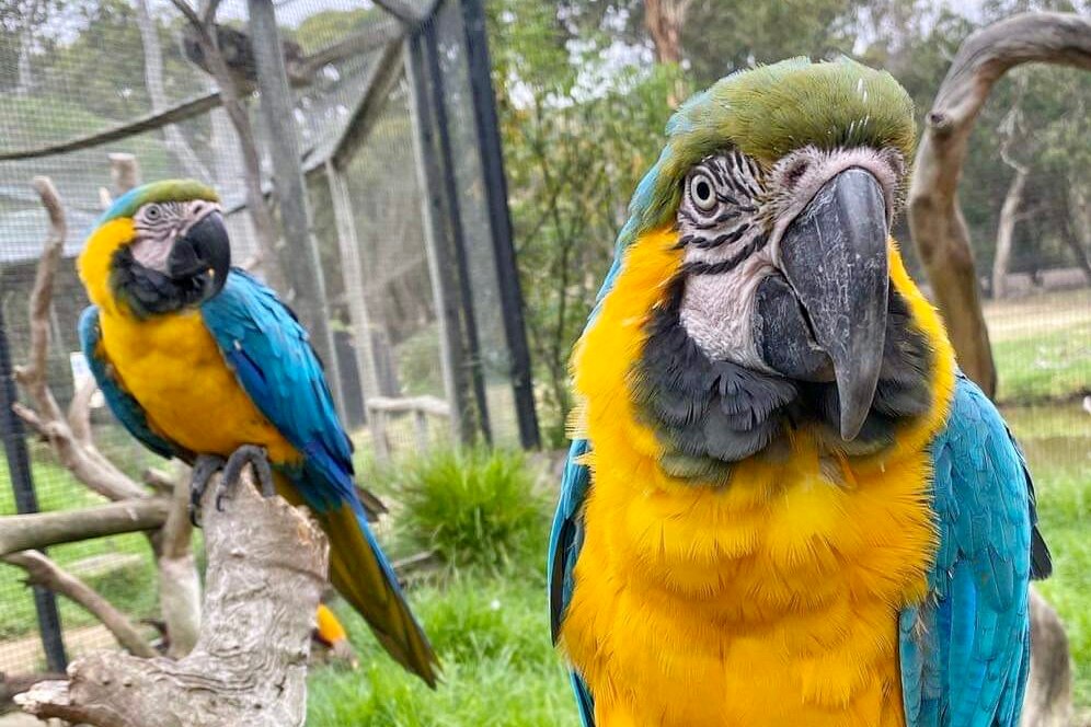 When Monty and Bee Bee's owner was diagnosed with cancer, his family contacted the owners of Victor Harbor's Urimbirra Wildlife Park in South Australia to ask if they could take care of his beloved birds.