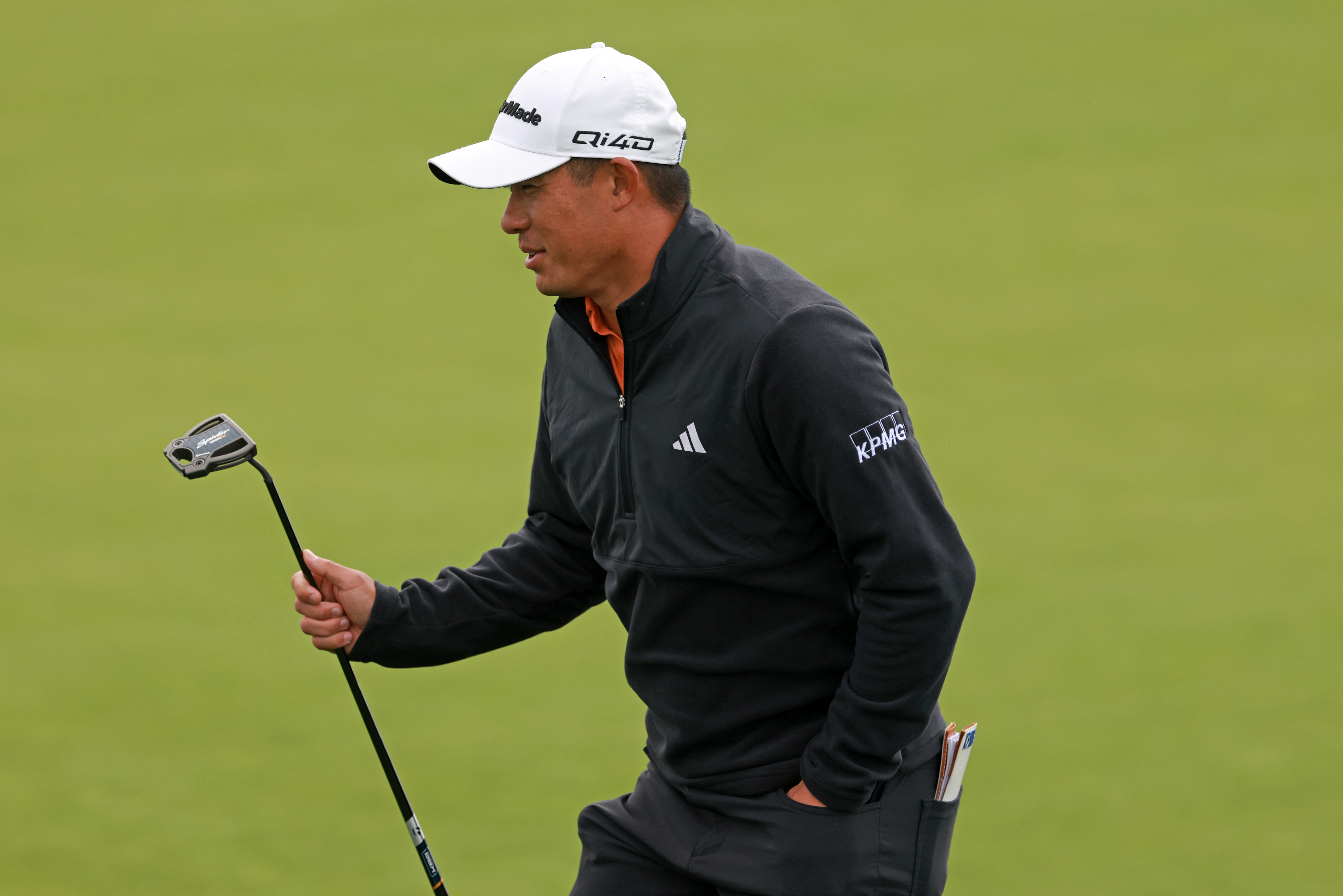 Preferred lies are in-play today and, in the end, Morikawa is told to play the ball from where he placed it, with no penalty given. He rolls the putt up close, so should make par.